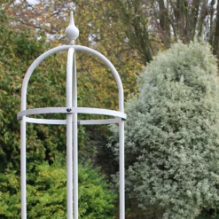 A cleverly designed structure, featuring a stylish gothic style finial, designed to provide hidden support and form to shrub roses and other large perennials.