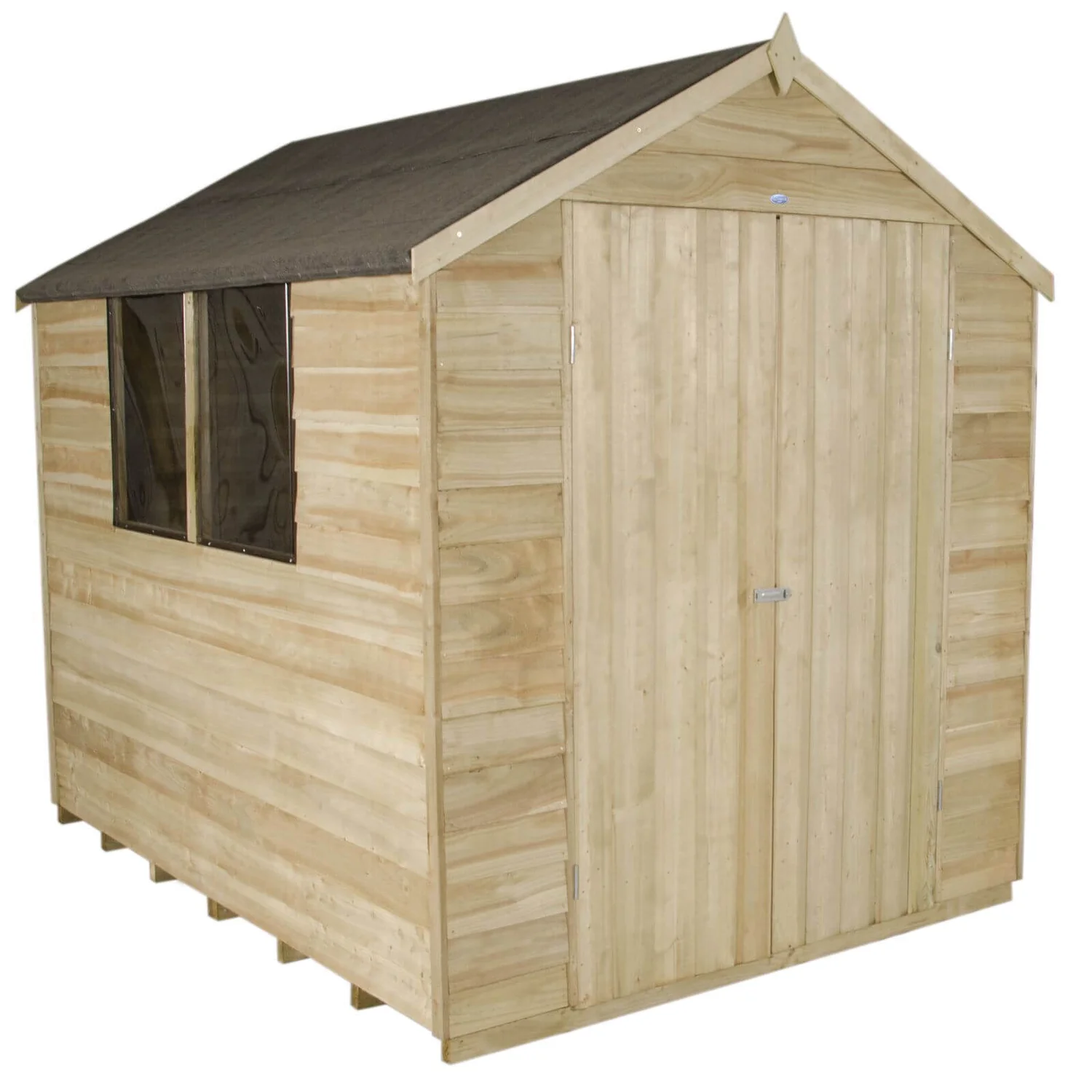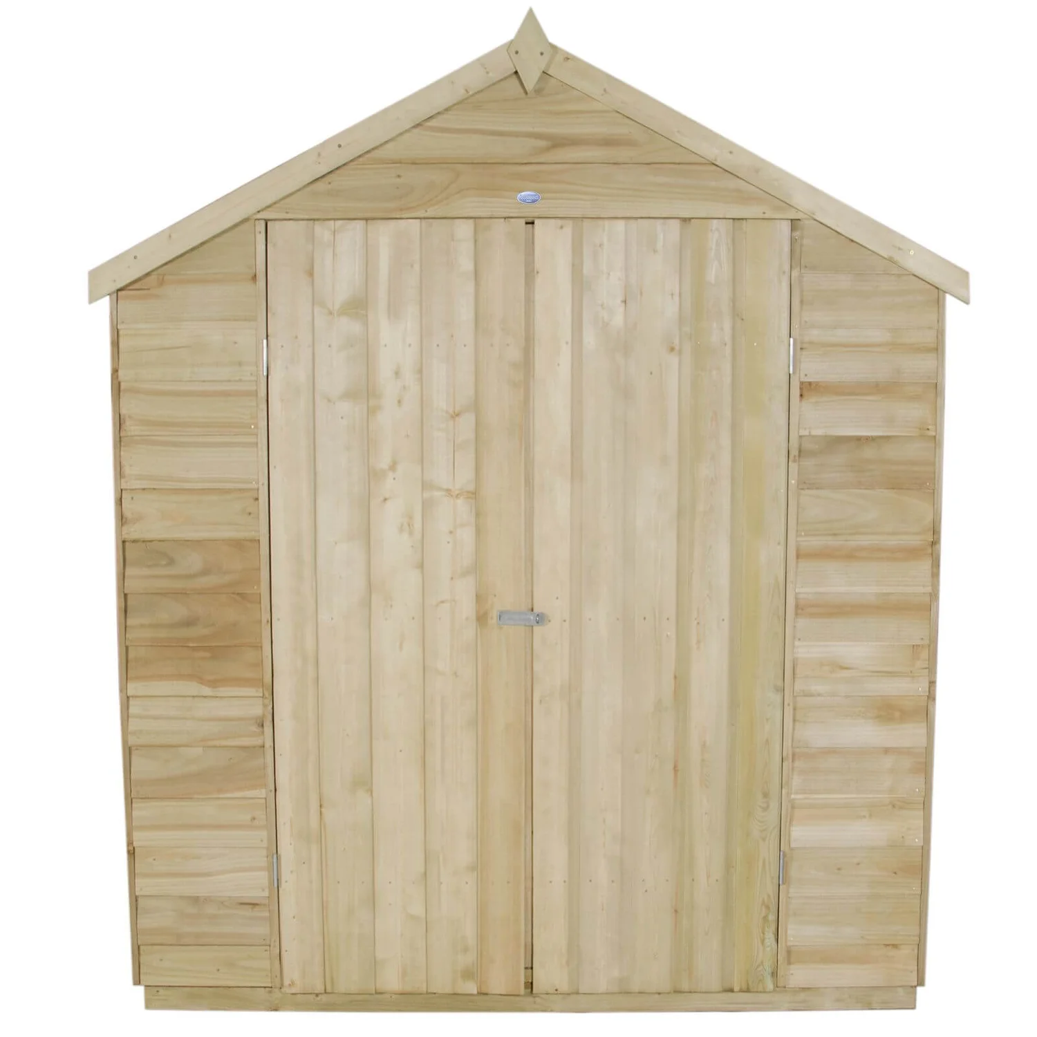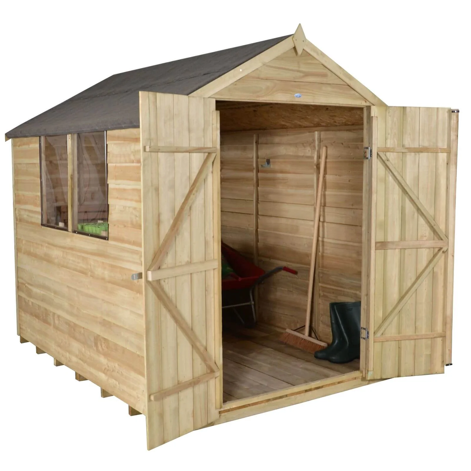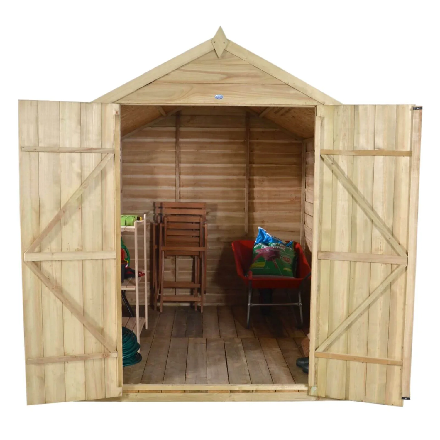 The overlap pressure treated 8×6 apex shed with double doors from Forest is a great storage solution for all types of gardening equipment, from bikes to lawnmowers. The generous headroom and double doors mean there’s plenty of room to move around and easy access. The shed’s improved design features smaller sections, making it easier to handle and easy to assemble.