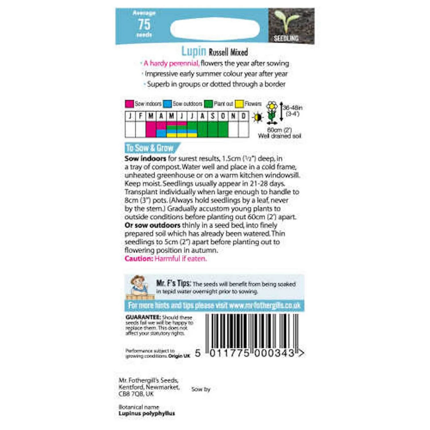 Lupin Russell Mixed (Lupinus polyphyllus) has majestic flower spikes which provide early summer colour year after year. Great for dot planting and mixed cottage style borders.