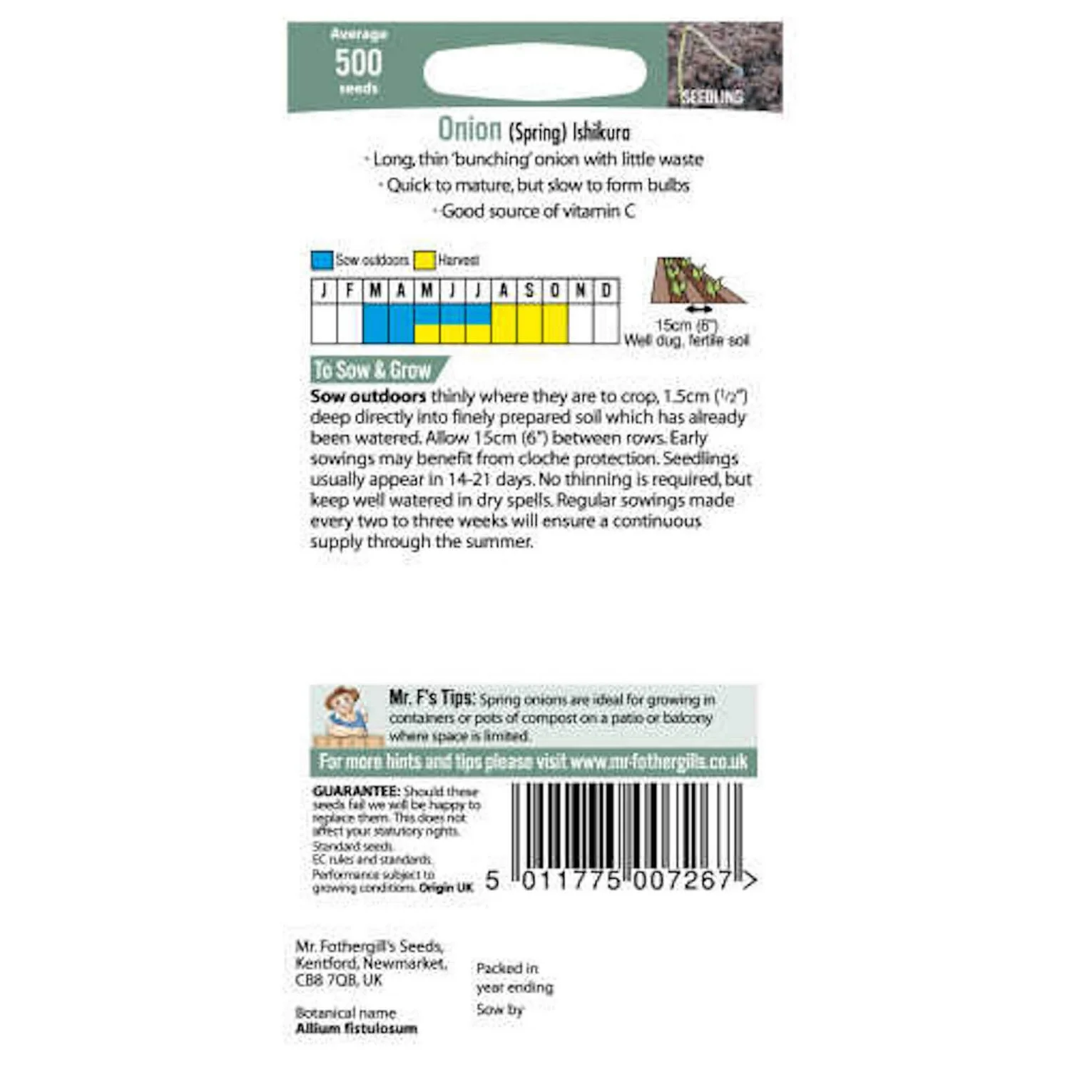 Spring Onion Ishikura (Allium Fistulosum) is quick and easy to grow producing slow bulbing long and slender bunching onions.A good source of vitamin C.