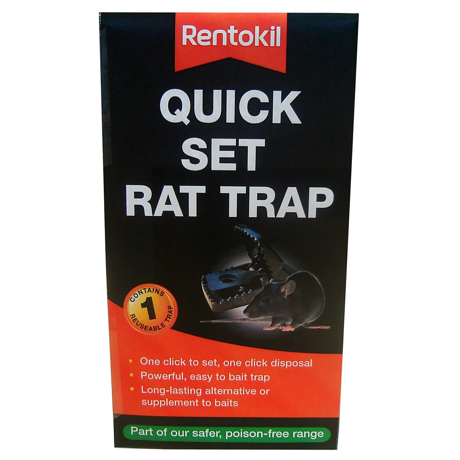 The Rentokil Quick Set Rat Trap is a powerful reusable plastic snap trap for killing rats.