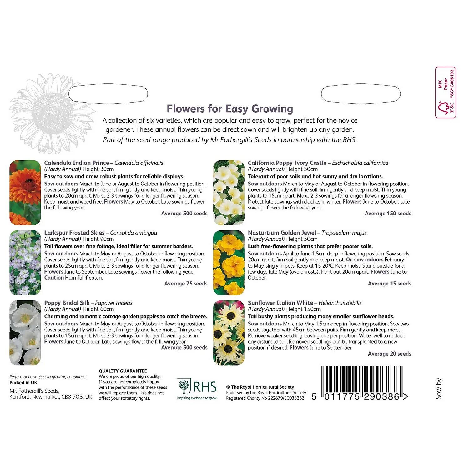 | Additional Information | Flower seeds |